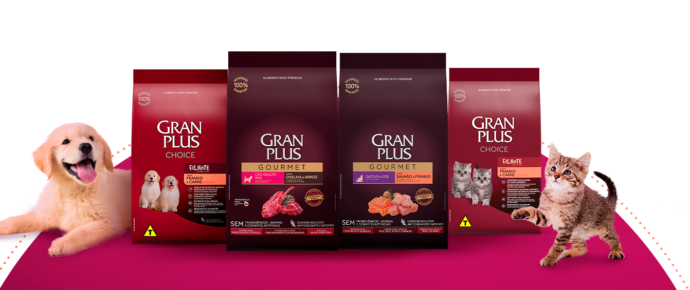 Além das linhas Choice e Gourmet, a GranPlus conta também com a linha Menu, que já oferece alimentos para todas as fases da vida dos pets. A marca está presente em petshops, mega stores pet e e-commerces do país para conhecer mais sobre essa linha acesse: granplus.com.br