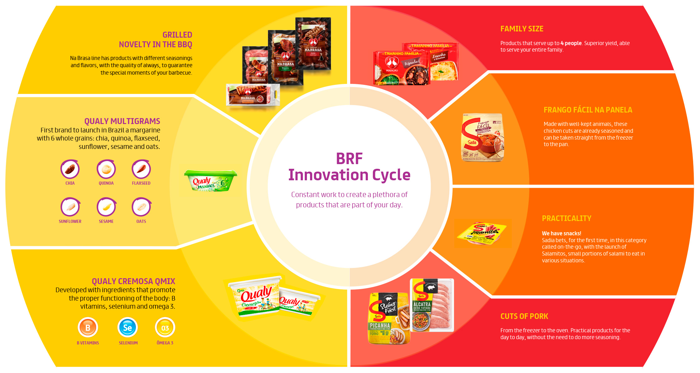 Our brands, always attentive to the needs of the consumer, think of solutions that facilitate the day to day and innovate with each launch developed worldwide. In 2017 alone, there were 294 new products available to the consumer, 94 in Brazil, 72 in the Asia region, 21 in Europe, 45 in Africa, 20 in the Americas, 32 in the Southern Cone (Argentina, Bolivia, Chile, Paraguay and Uruguay) and 10 in the Middle East. Check out some of our great bets that today are hit at the table of families around the world: