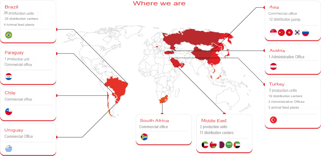 The company becomes the third largest national exporter and the world’s biggest animal protein exporter. Achieving a production of over 4 million tons per year, the company announces the commencement of a processed foods unit construction in the Middle East.