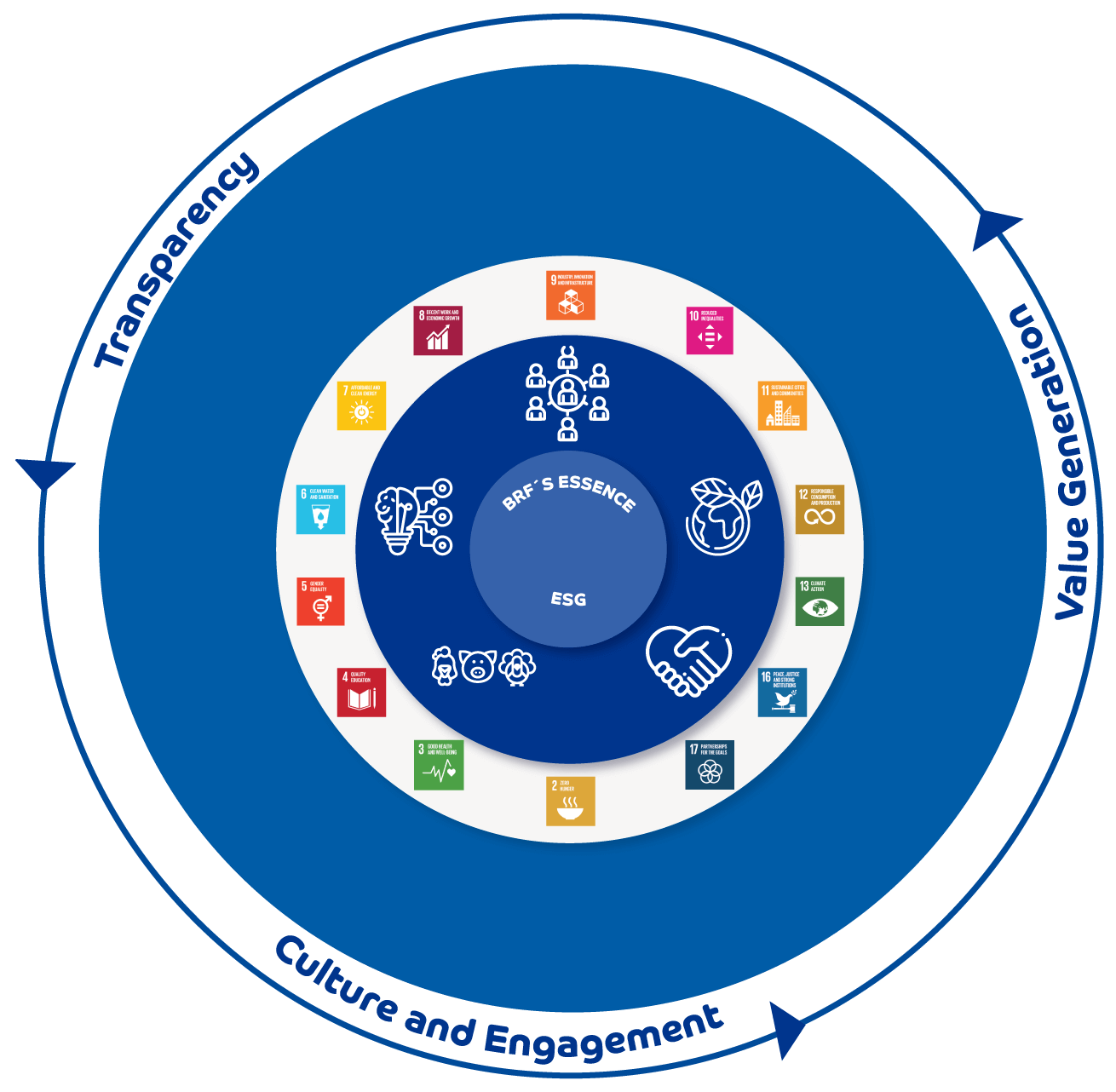BRF´s Sustainability Plan is in line with our Essence and aligned with our Sustainability Policy. Through the Plan, we reinforce our commitment to incorporating ESG (Environmental, Social and Governance) aspects into the Company's future vision.