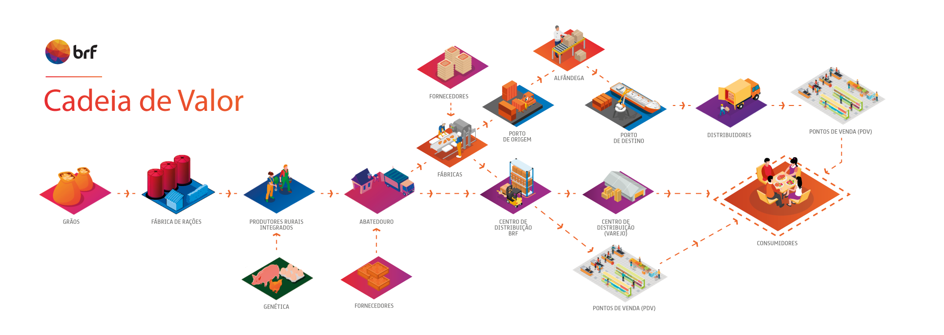 Das embalagens à proteína animal, passando pelas etapas de transporte e distribuição ao mercado consumidor. O ciclo de vida dos nossos produtos possui papéis econômicos, sociais e ambientais gerenciados de forma contínua.